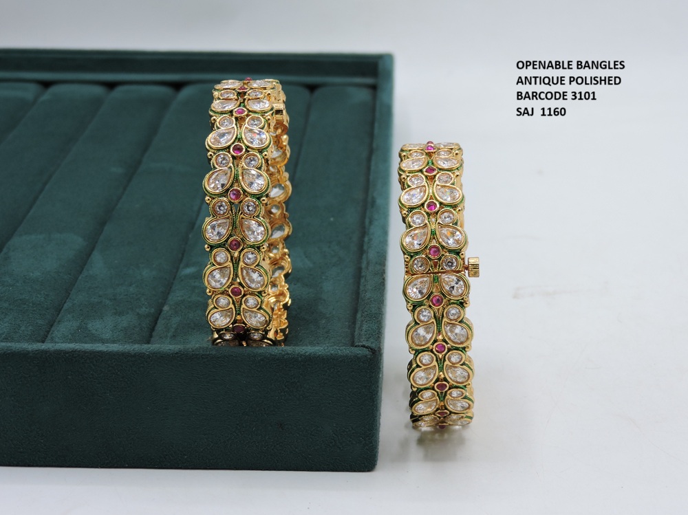 ANTIQUE POLKI STONE RAJWADI POLISH BANGLES