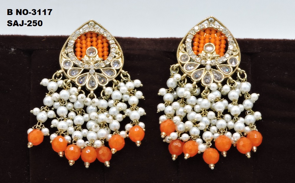 REVERSE AD STONE MEHANDI POLISH EARRING