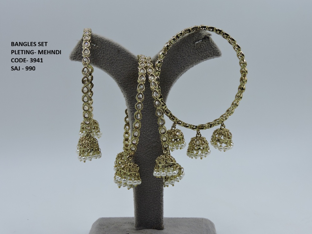 MEHNDI POLISH REVERS AD 4 PIECE BANGLES ATTACHED WITH JHUMKA (LATKAN)