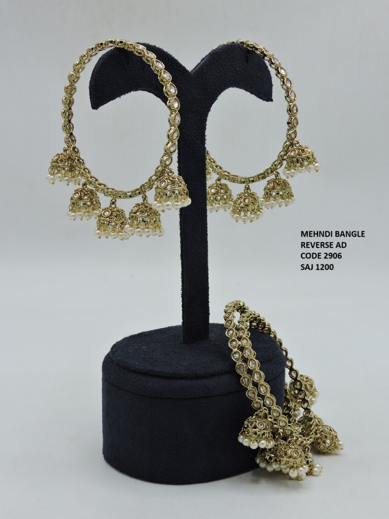 MEHNDI POLISH REVERS AD STONE 4 PIECE BANGLES ATTACHED WITH JHUMKA(LATKAN)