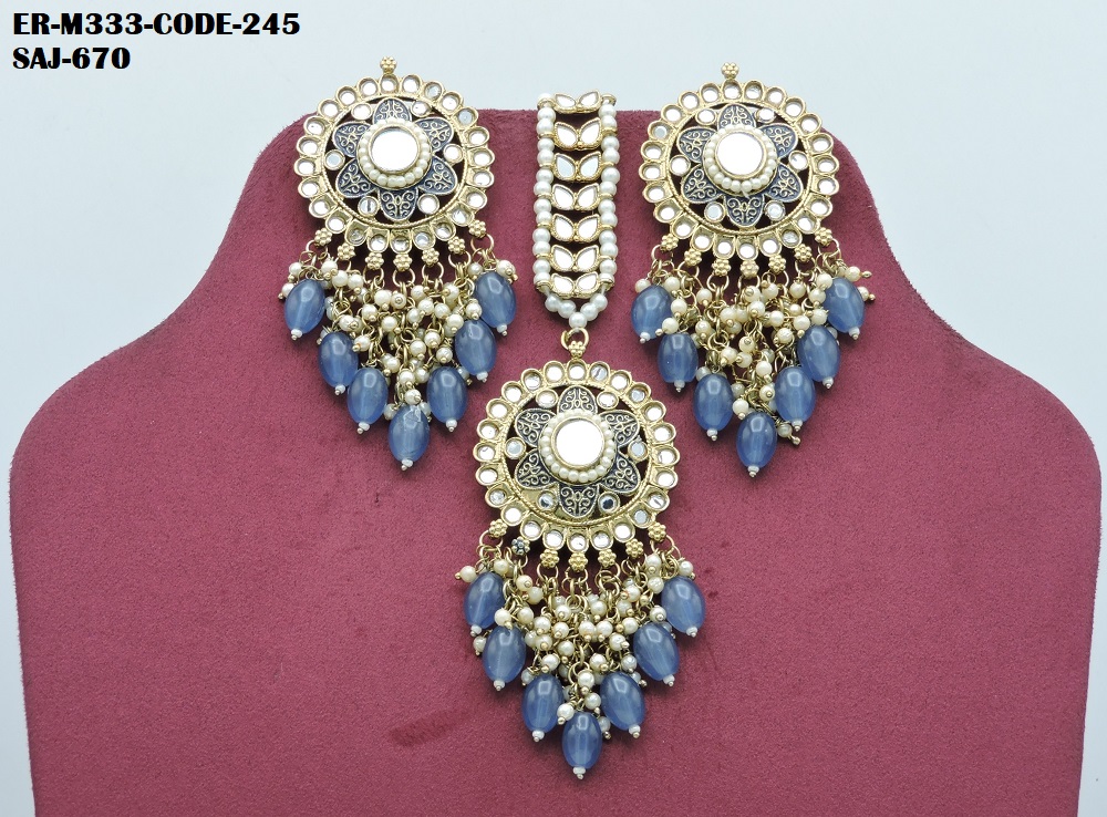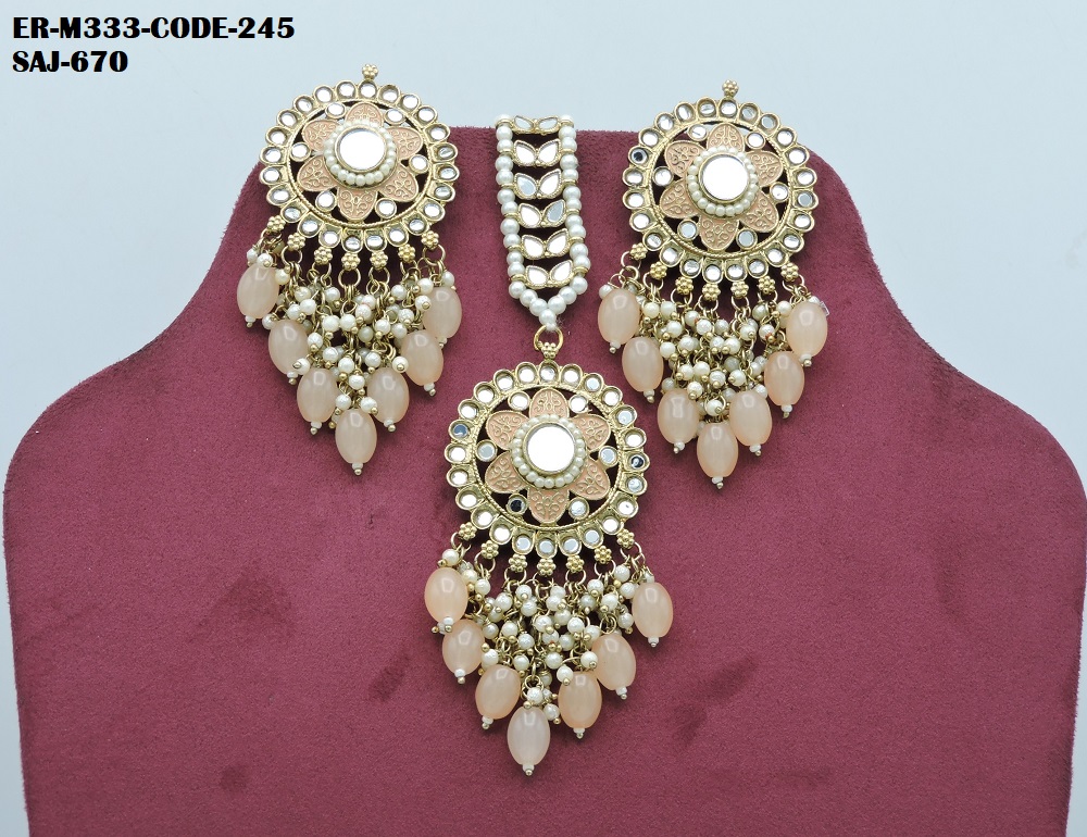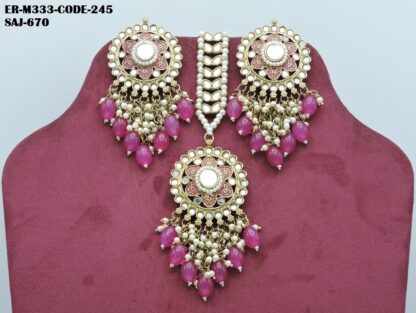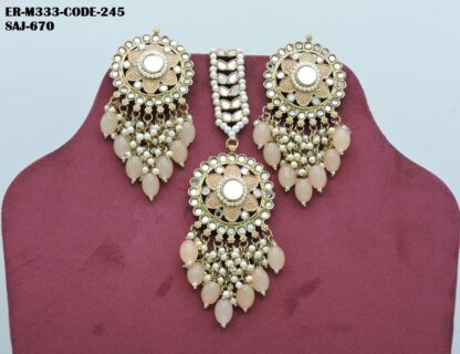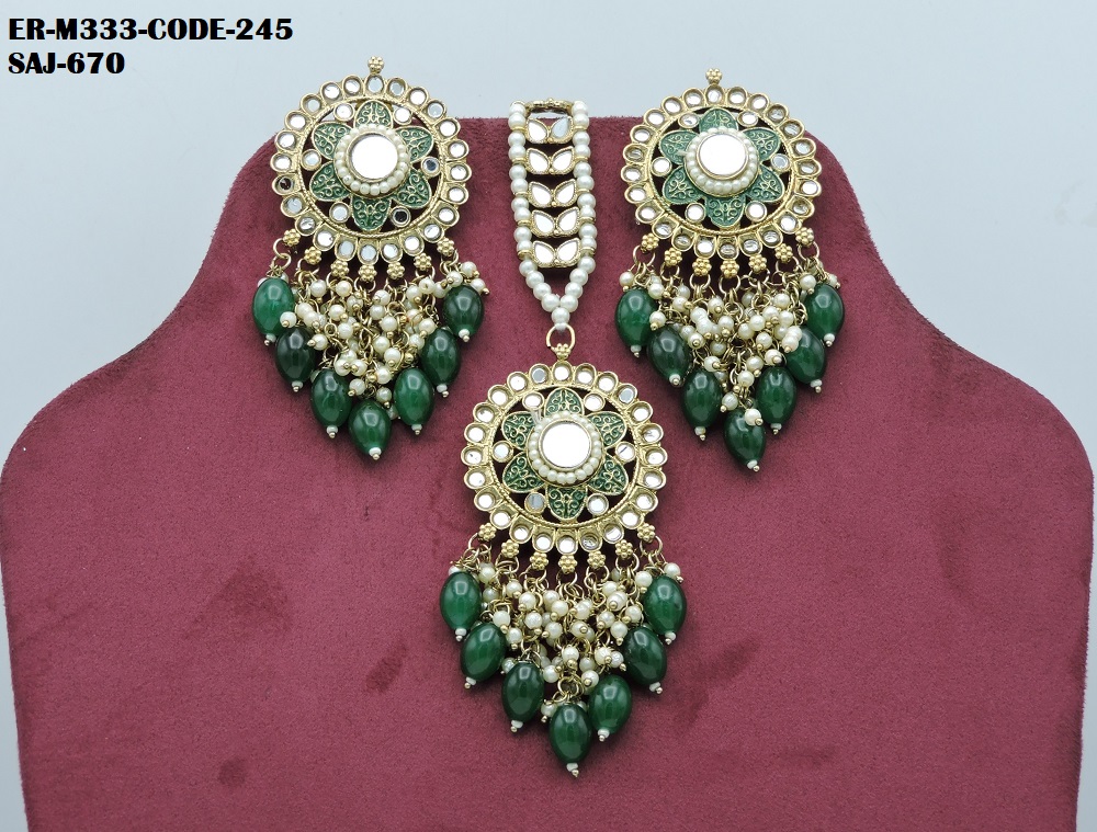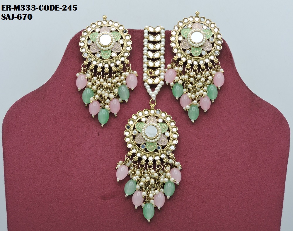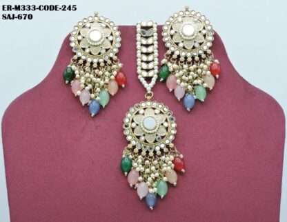MIRROR STONE MEHNDI POLISH EARRING WITH TIKKA