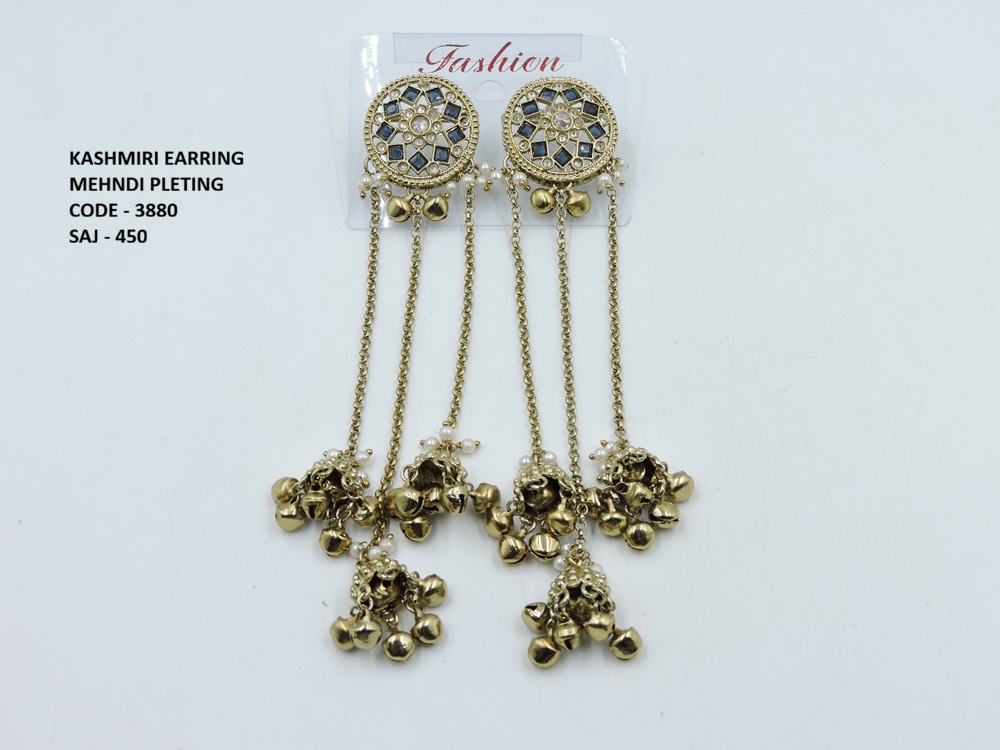REVERSE AD STONE MEHNDI POLISH KASHMIRI EARRING
