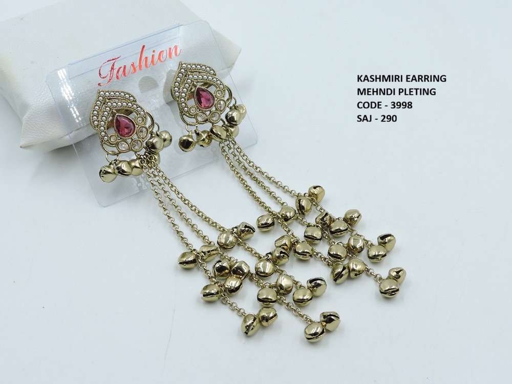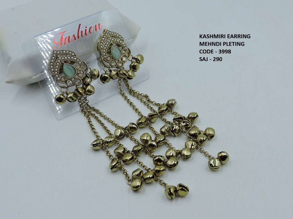 REVERSE AD STONE MEHNDI POLISH KASHMIRI EARRING