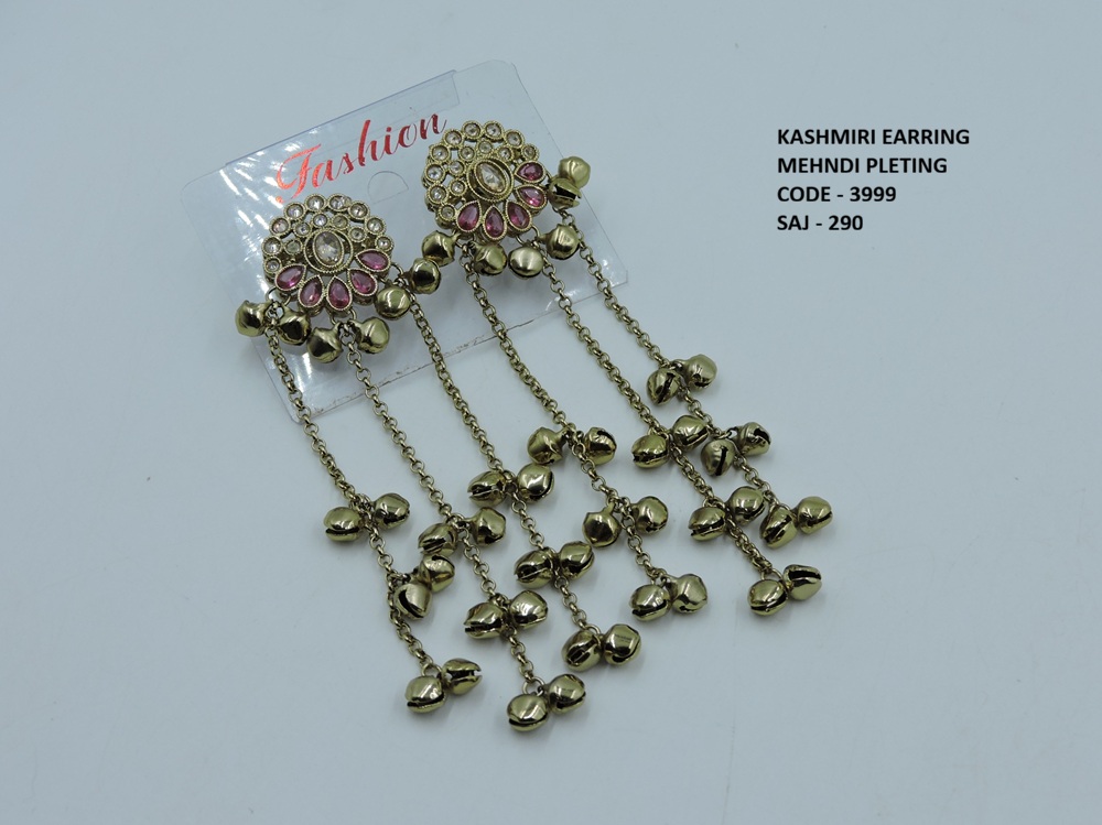 REVERSE AD STONE MEHNDI POLISH KASHMIRI EARRING
