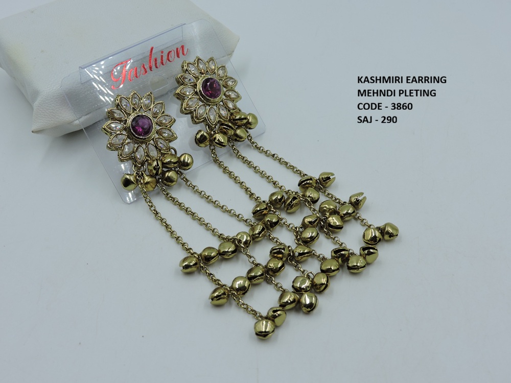 REVERSE AD STONE MEHNDI POLISH KASHMIRI EARRINGS