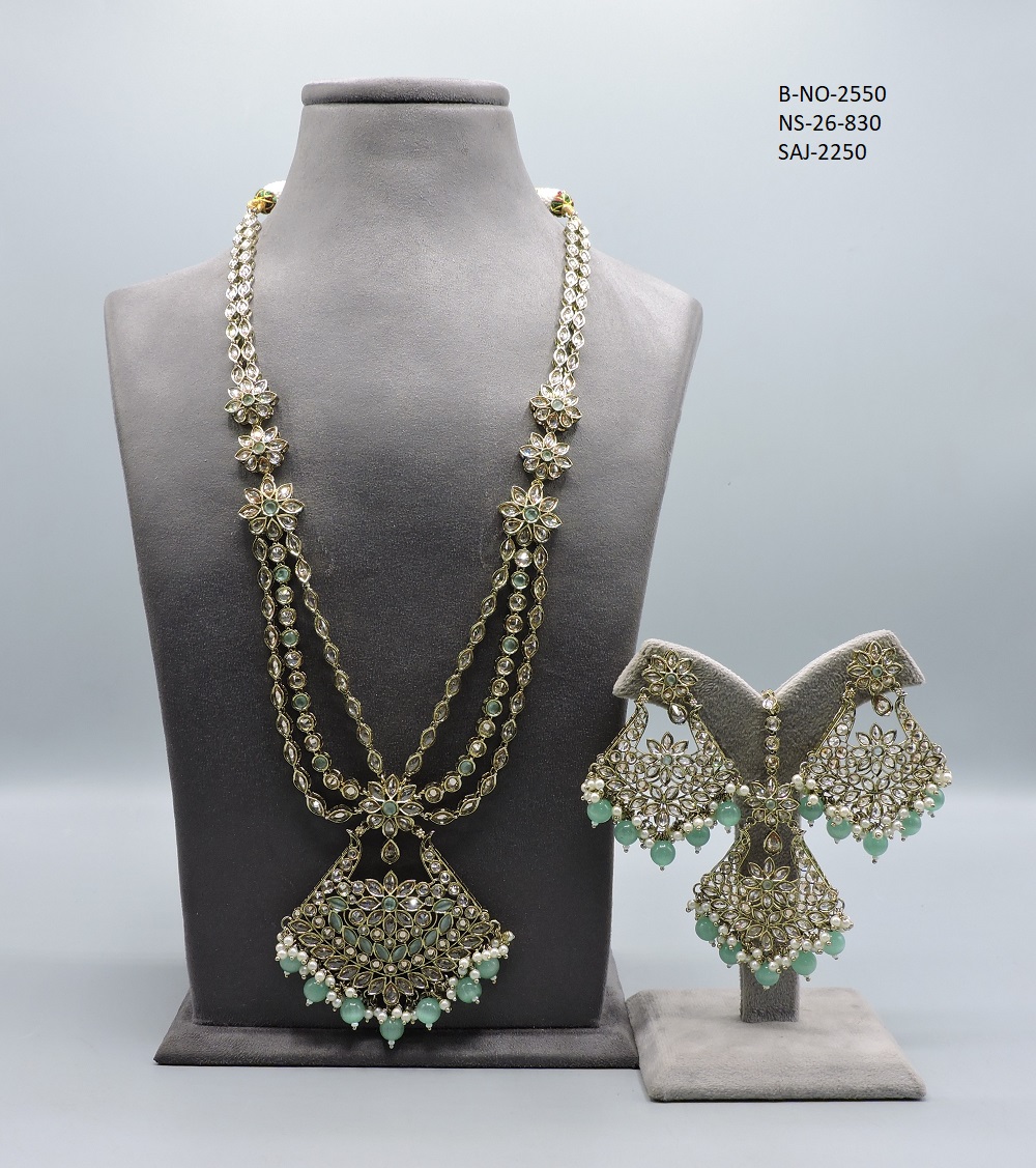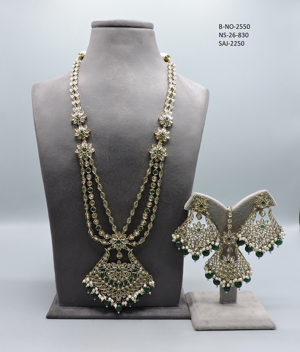 REVERSE AD STONE MEHNDI POLISH NECKLACE SET