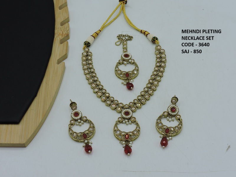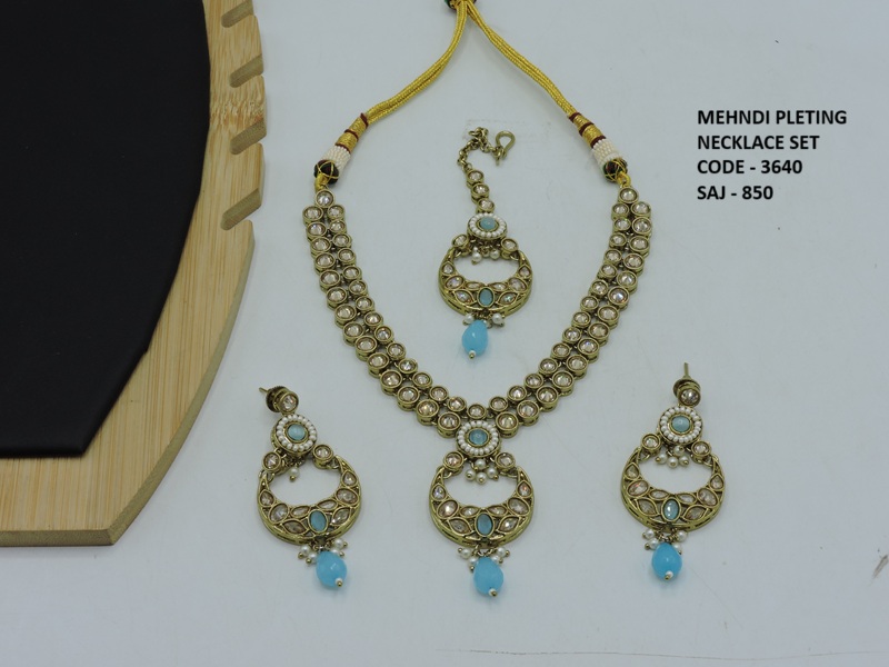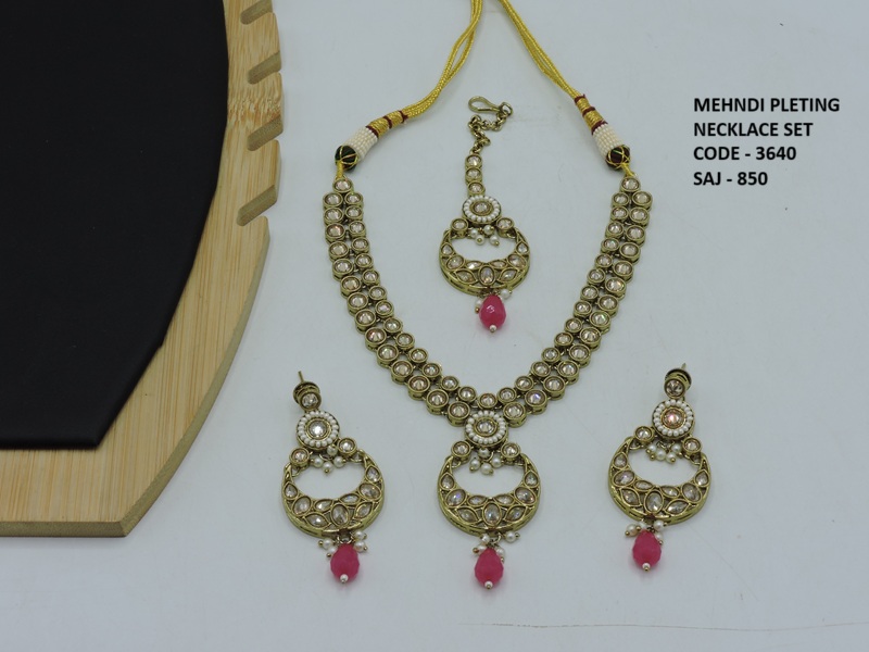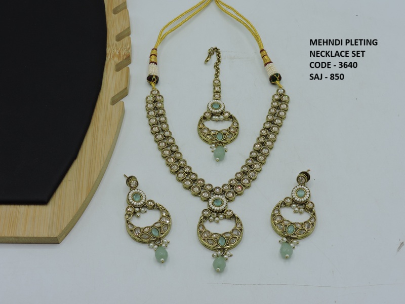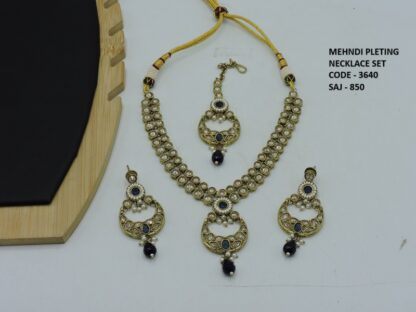 REVERS AD STONE MEHNDI POLISH DELICATE NECKLACE SET