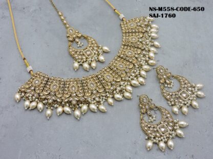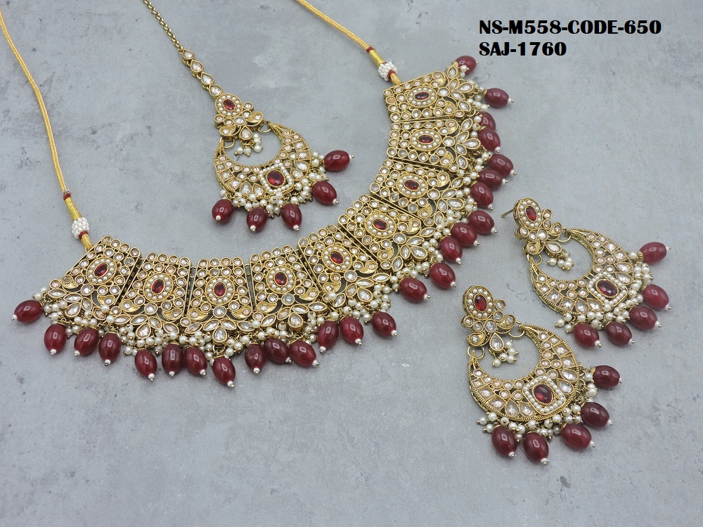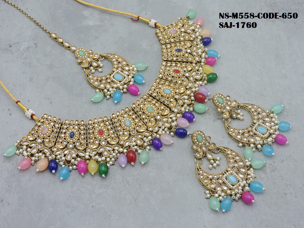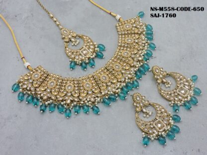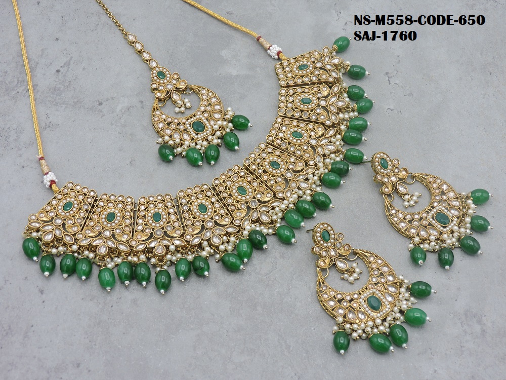REVERSE AD STONE MEHNDI POLISH HEAVY LOOK NECKLACE SET