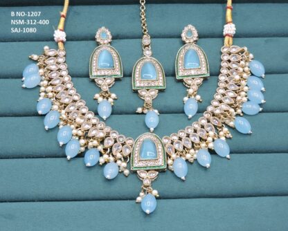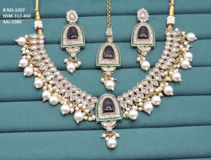 REVERSE AD STONE MEHNDI POLISH NACKLACE SET