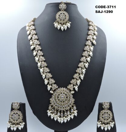 REVERSE AD STONE MEHNDI POLISH LONG NECKLACE SET
