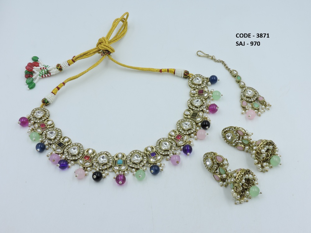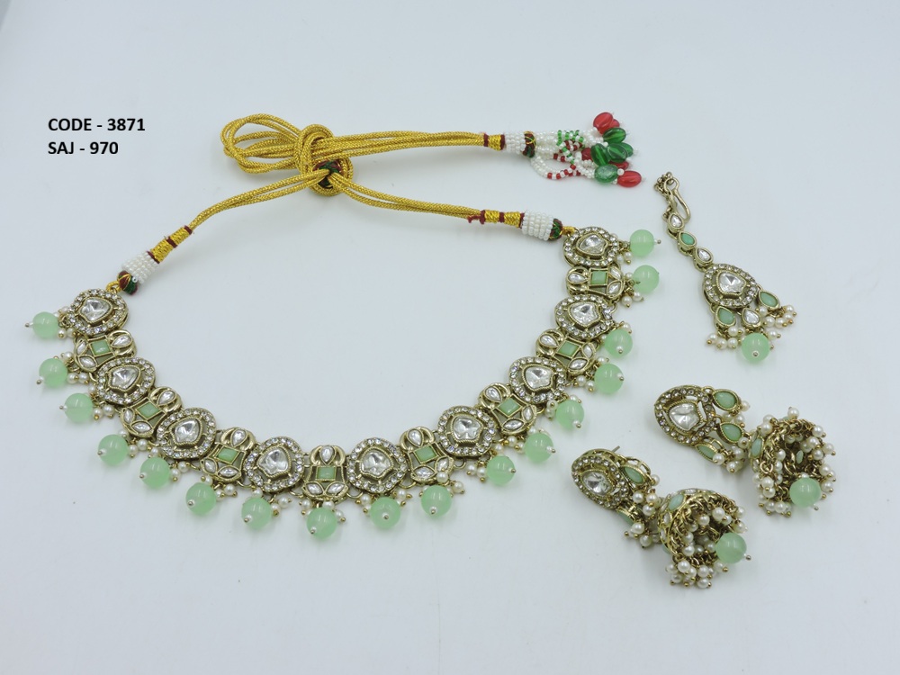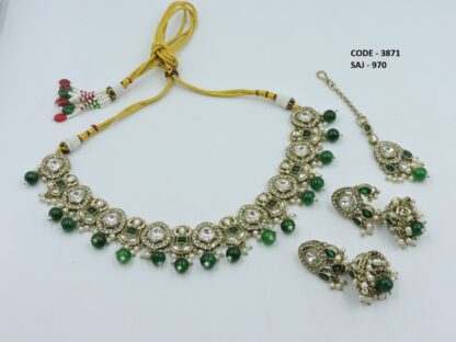 FOIL KUNDAN STONE MEHNDI POLISH DELICATE NECKLACE SET