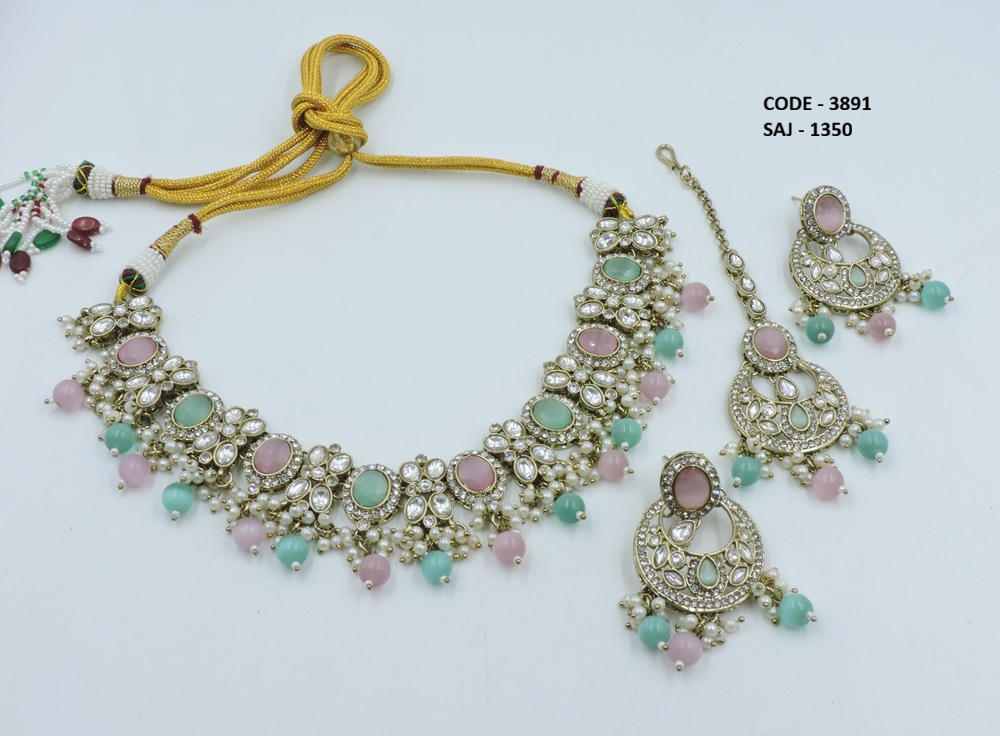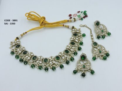 FOIL KUNDAN STONE MEHNDI POLISH DELICATE NECKLACE SET