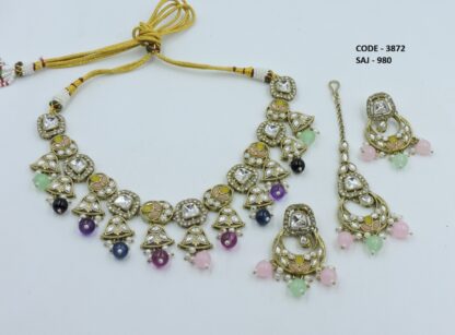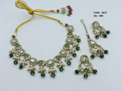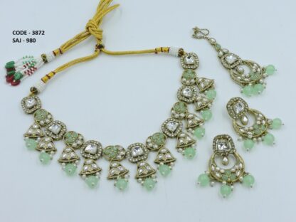 FOIL KUNDAN STONE MEHNDI POLISH DELICATE NECKLACE SET
