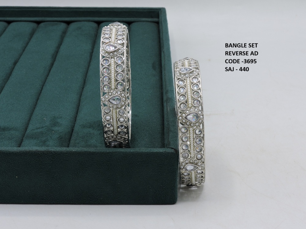REVERSE AD STONE SILVER POLISH TWO PEACE BANGLES