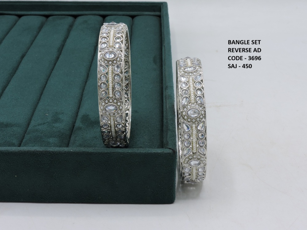 REVERSE AD STONE SILVER POLISH TWO PEACE BANGLES