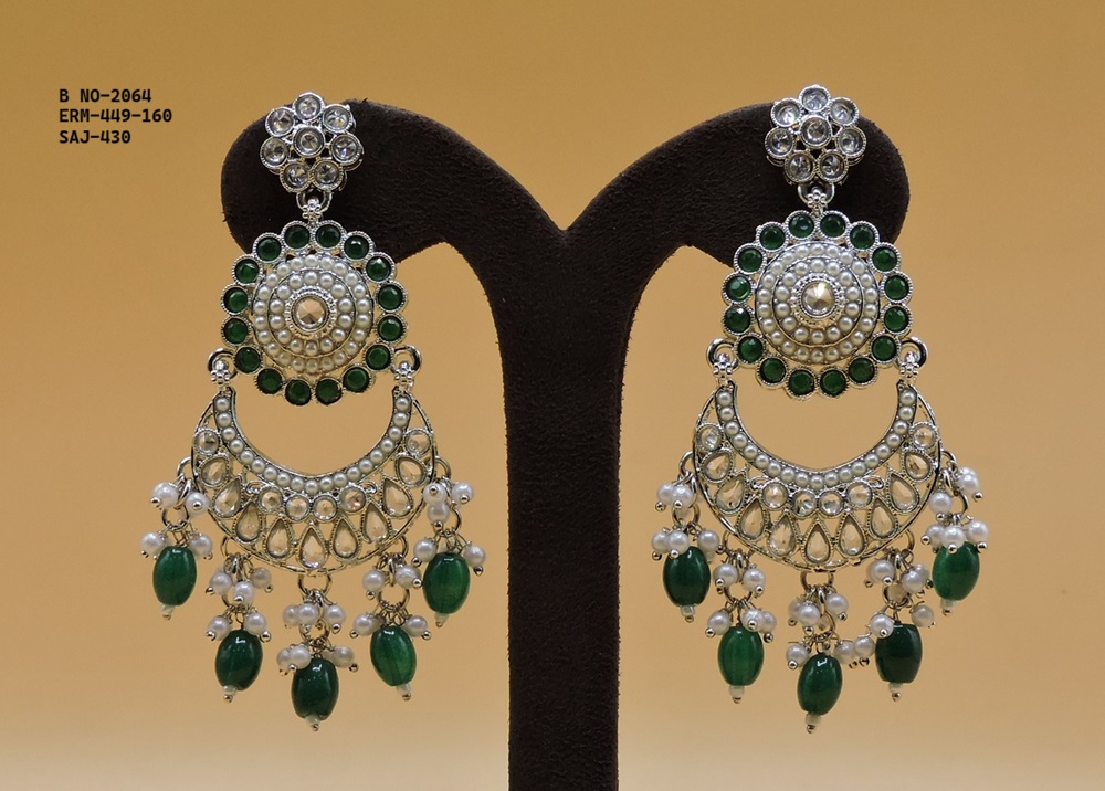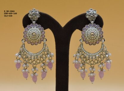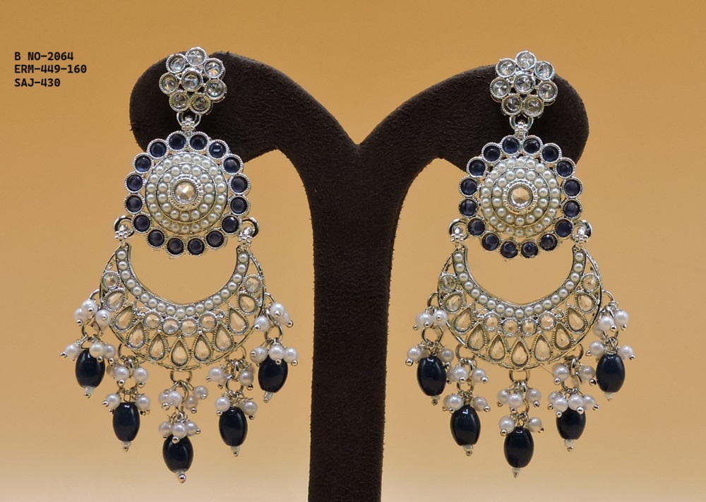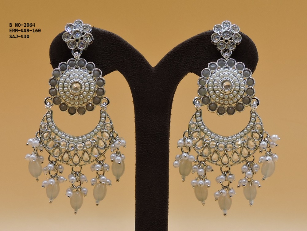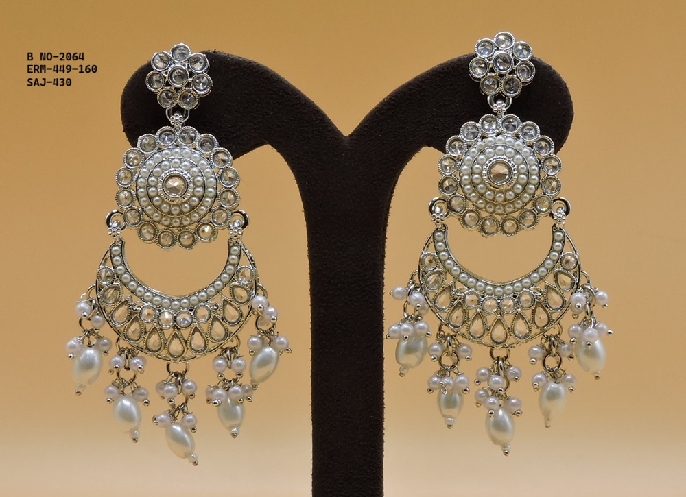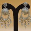 SILVER POLISHED DEISGNER EARRINGIN REVERSE AD STONE FOR PARTY WEAR