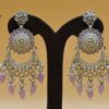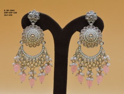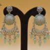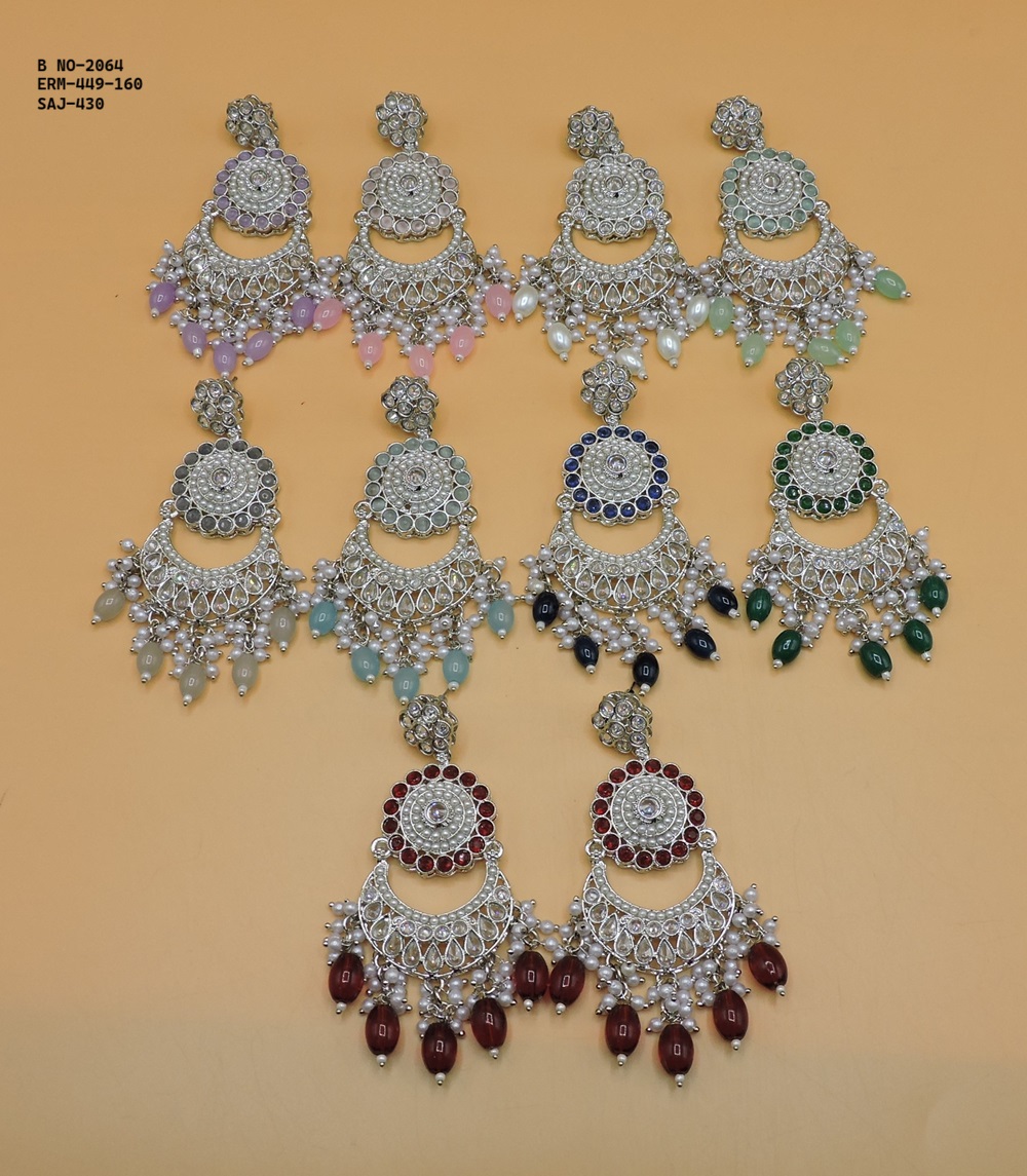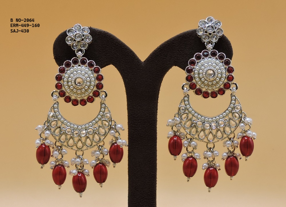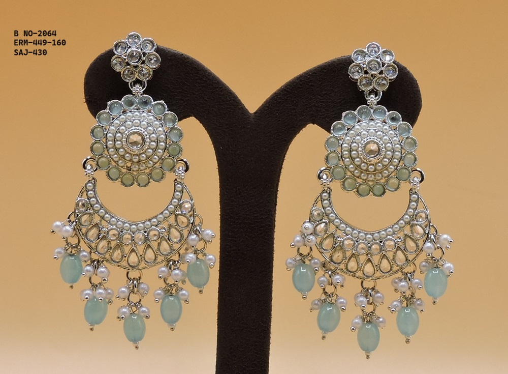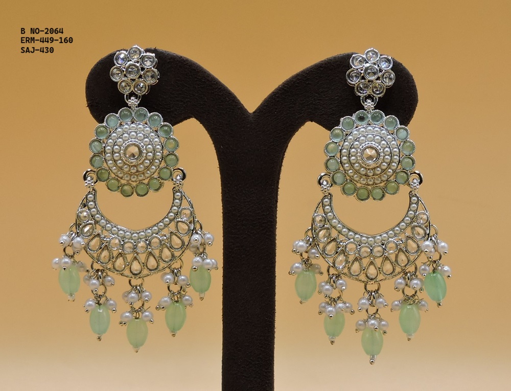 SILVER POLISHED DEISGNER EARRINGIN REVERSE AD STONE FOR PARTY WEAR