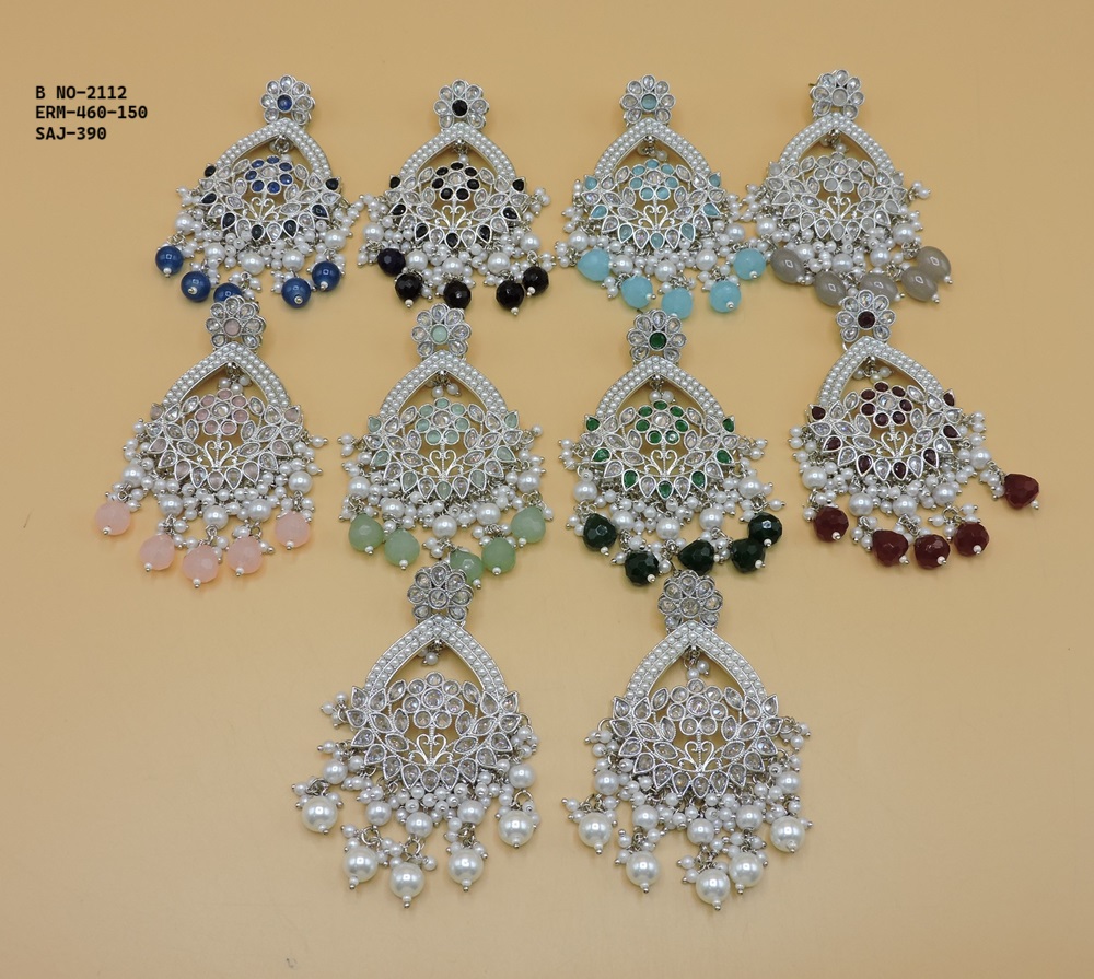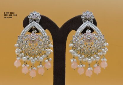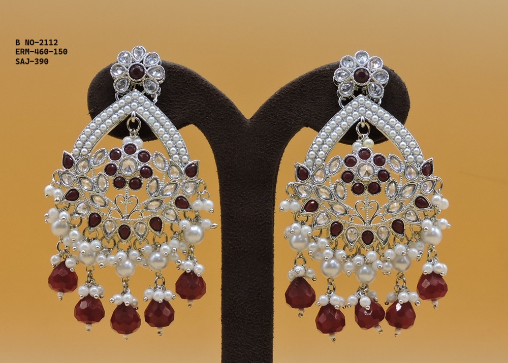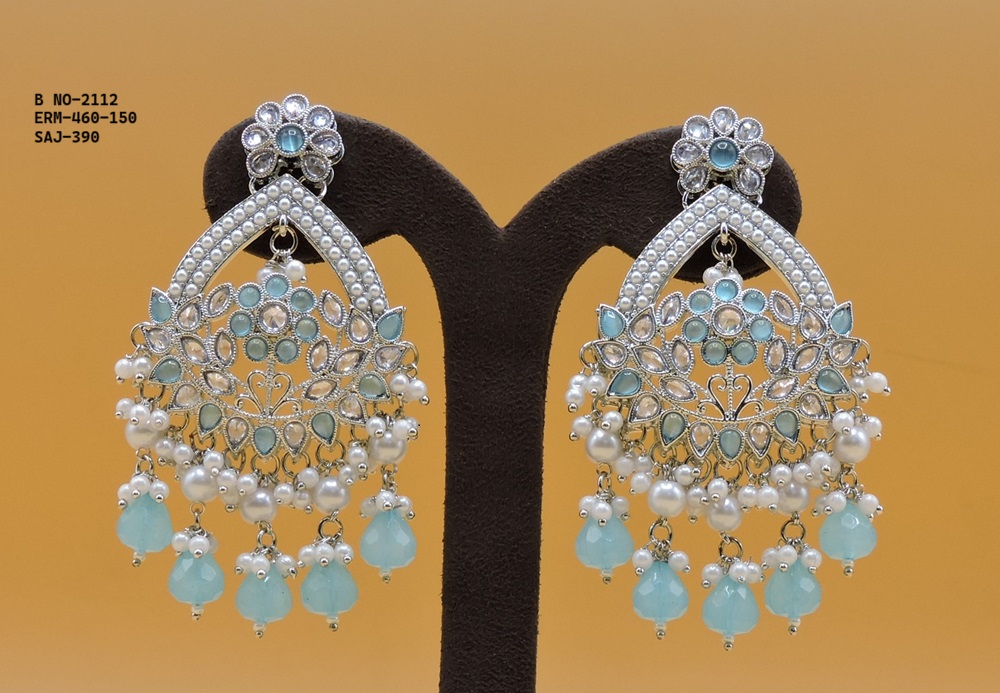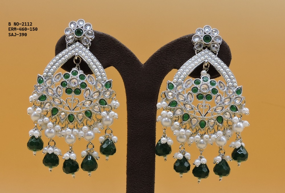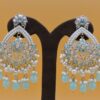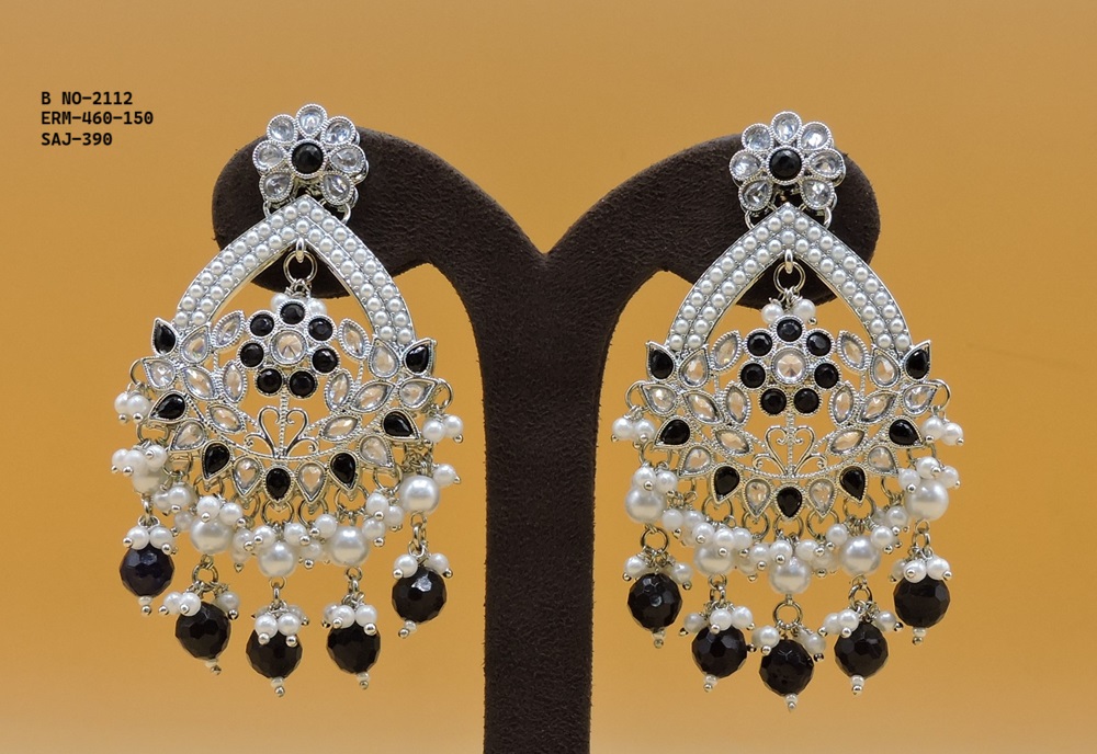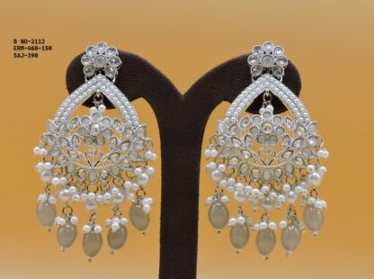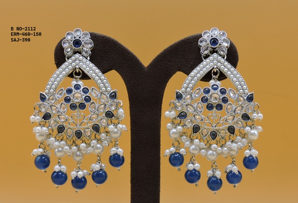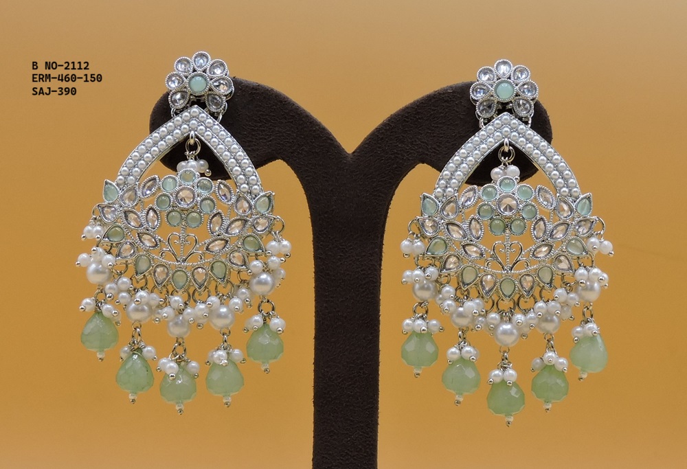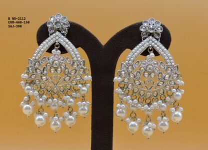 SILVER POLISHED DEISGNER EARRING IN REVERSE AD STONE FOR PARTY WEAR