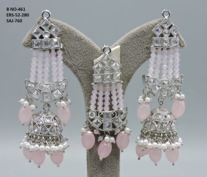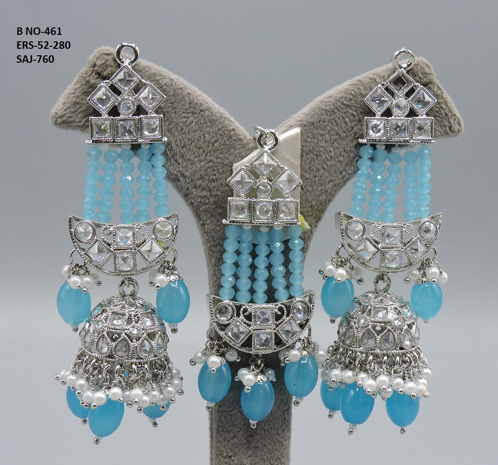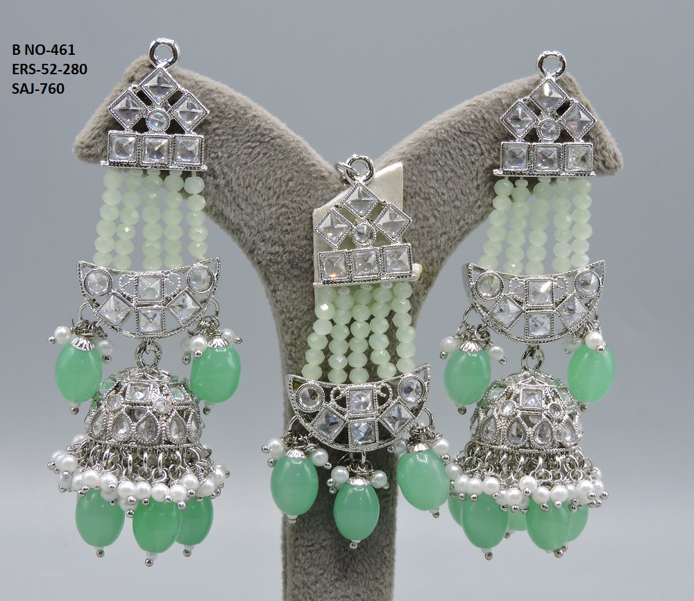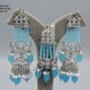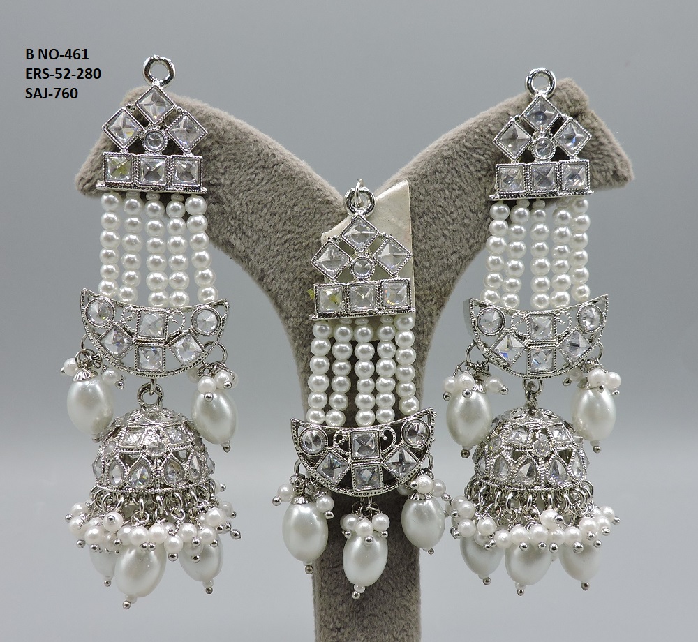 SILVER POLISHED DEISGNER EARRING WITH TIKKA IN REVERSE AD STONE FOR PARTY WEAR