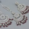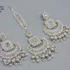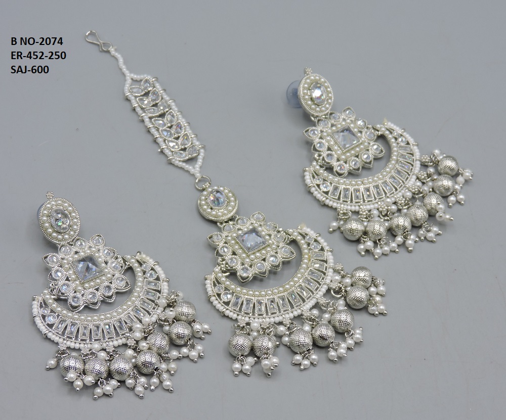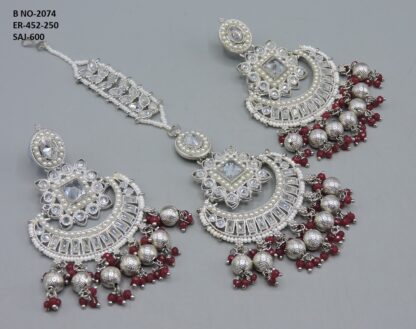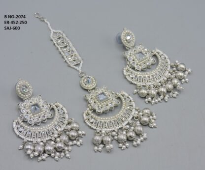 SILVER POLISHED DEISGNER EARRING WITH TIKKA IN REVERSE AD STONE FOR PARTY WEAR